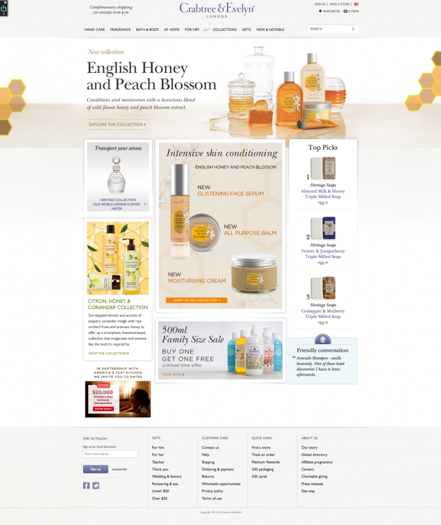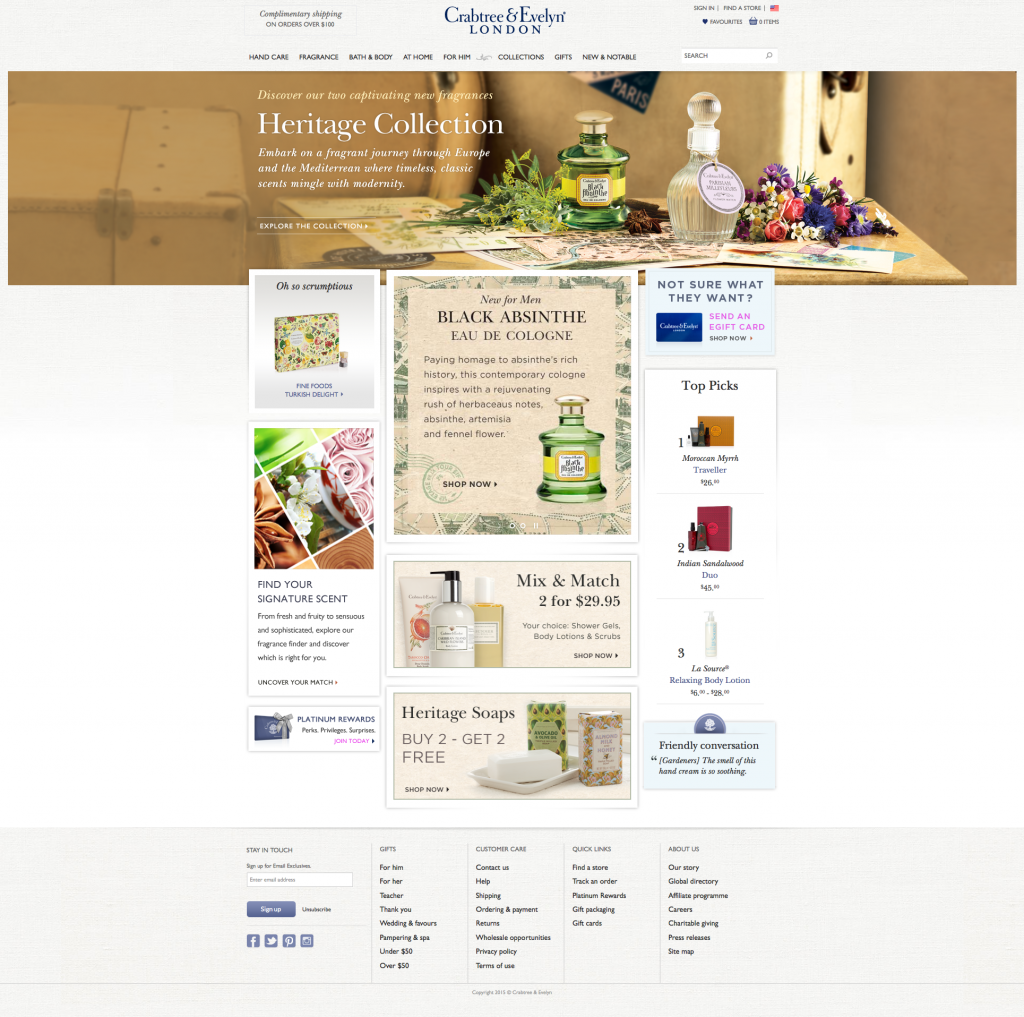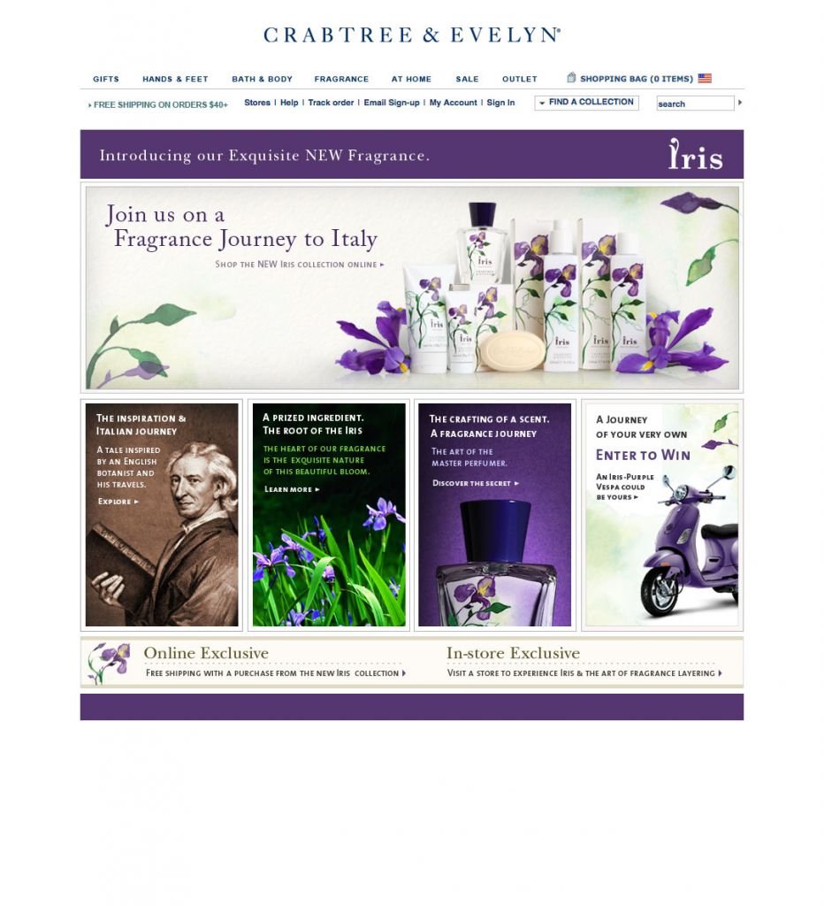Crabtree & Evelyn was a company with a very unique story to tell, originally driven by its founder, and was far more surprising than meets the eye. I was tasked with the development of their website, web design, online store, wholesale, email sales & promotions, content management, photography, video, as well as collaborating on in-store display. It gave me a whole new way to see the world creatively, and by the way, who could turn up an opportunity to have the softest skin and to smell really good, all in the mix.
