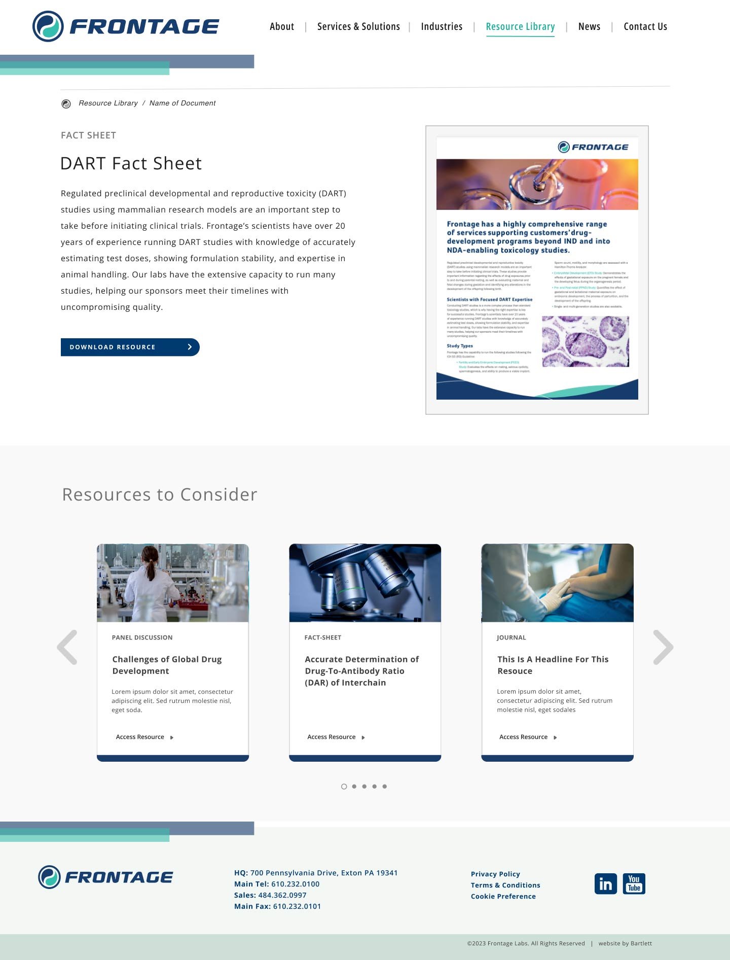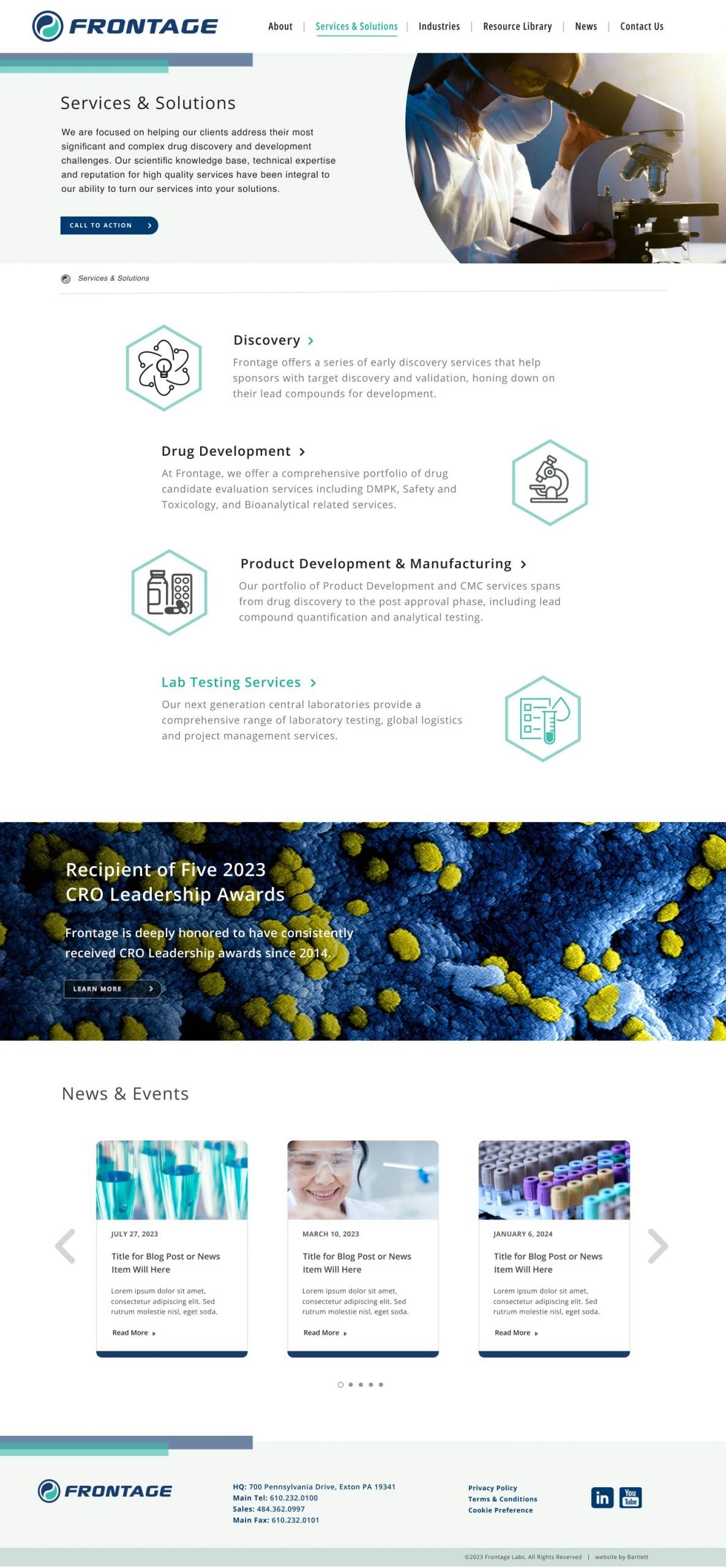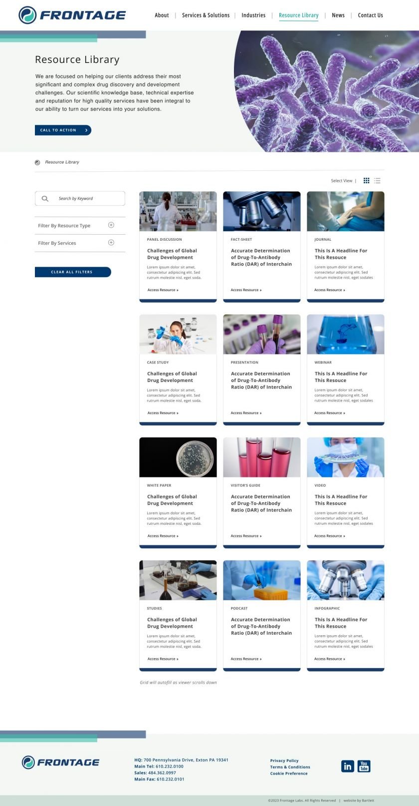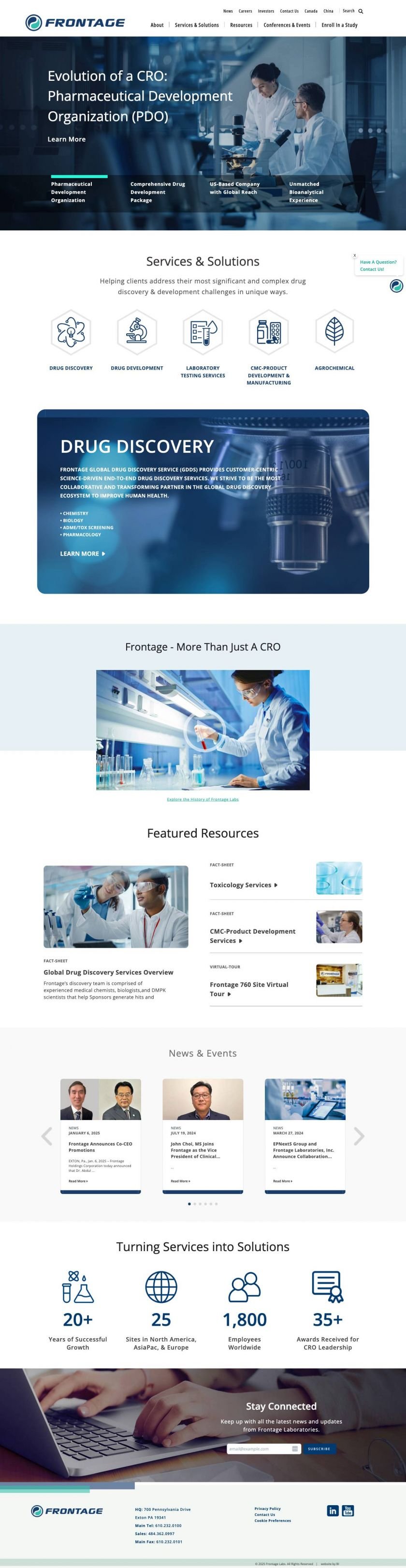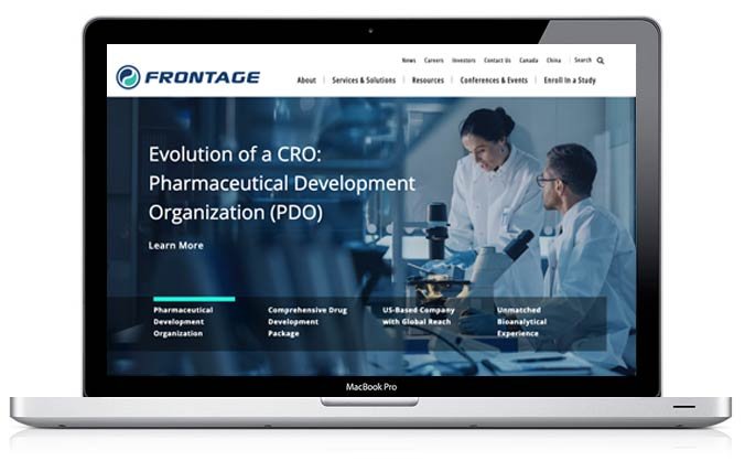 One of the key and unique features of the website, and one that was critically important to the organization, was that of representing the company in a truly “Global” fashion, since it is an integral part of their organization and a key service that Frontage Labs offers its clientele.