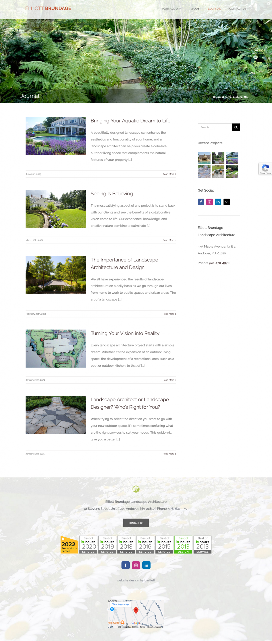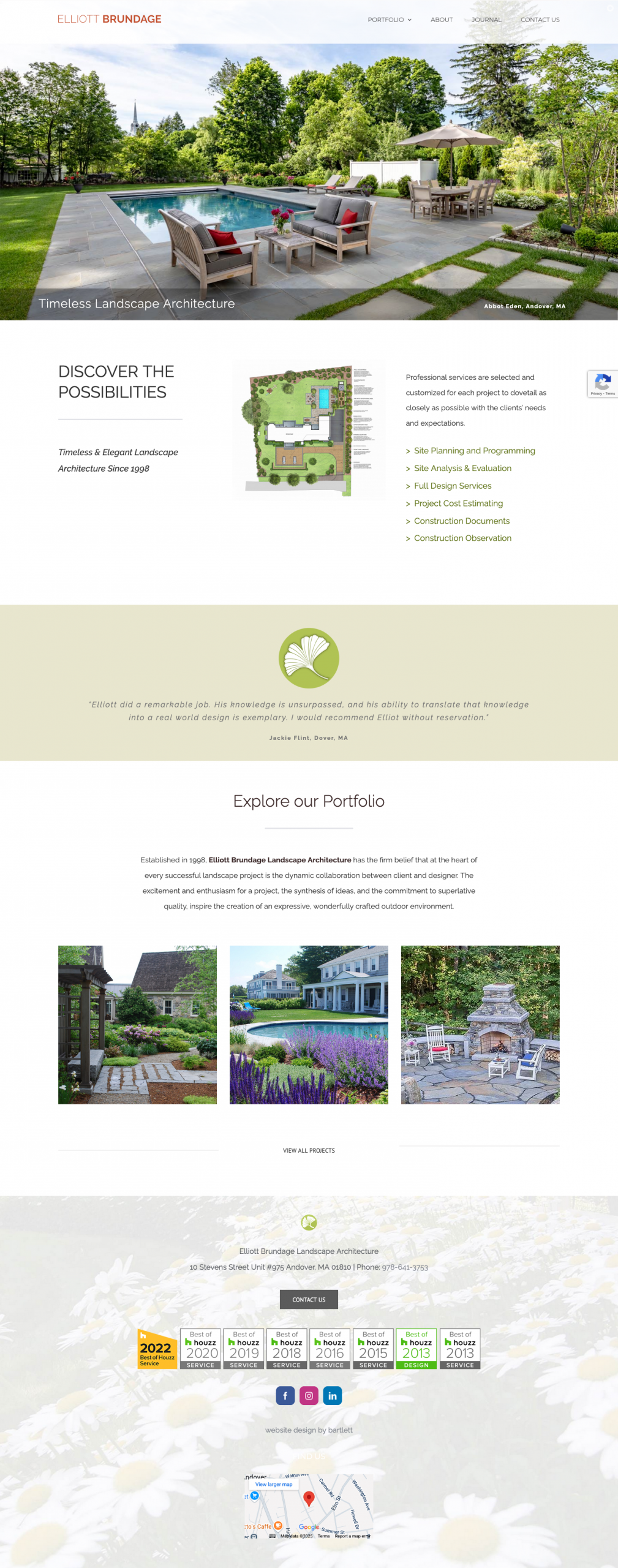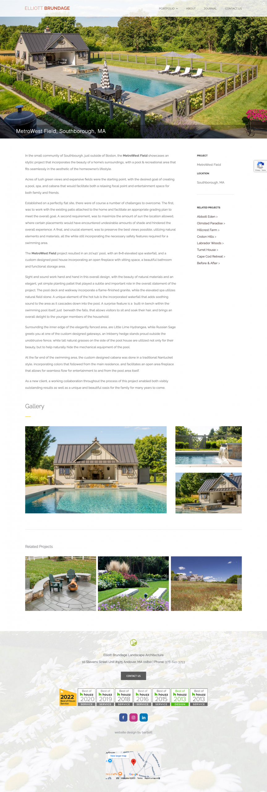 “Established in 1998, Elliott Brundage Landscape Architecture has the firm belief that at the heart of every successful landscape project is the dynamic collaboration between client and designer. The excitement and enthusiasm for a project, the synthesis of ideas, and the commitment to superlative quality inspire the creation of an expressive, wonderfully crafted outdoor environment.”
