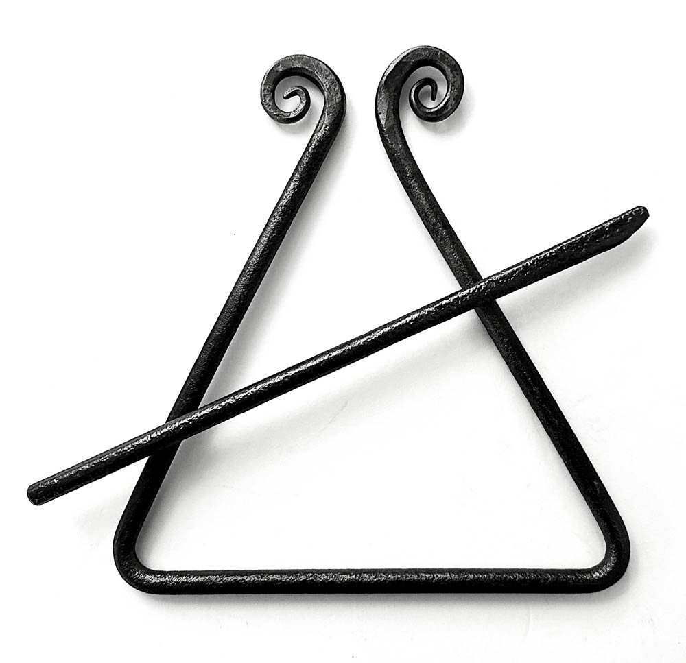 The “T’fer” or “Little Iron,” as it’s known in Cajun French, is a traditional rhythm instrument used to keep the beat for musicians and dancers alike for over a century. Starting its life as a tine on a 100-year-old hay rake, they are forged into “Three-Sided Music Machines” in my blacksmith shop in Arlington.